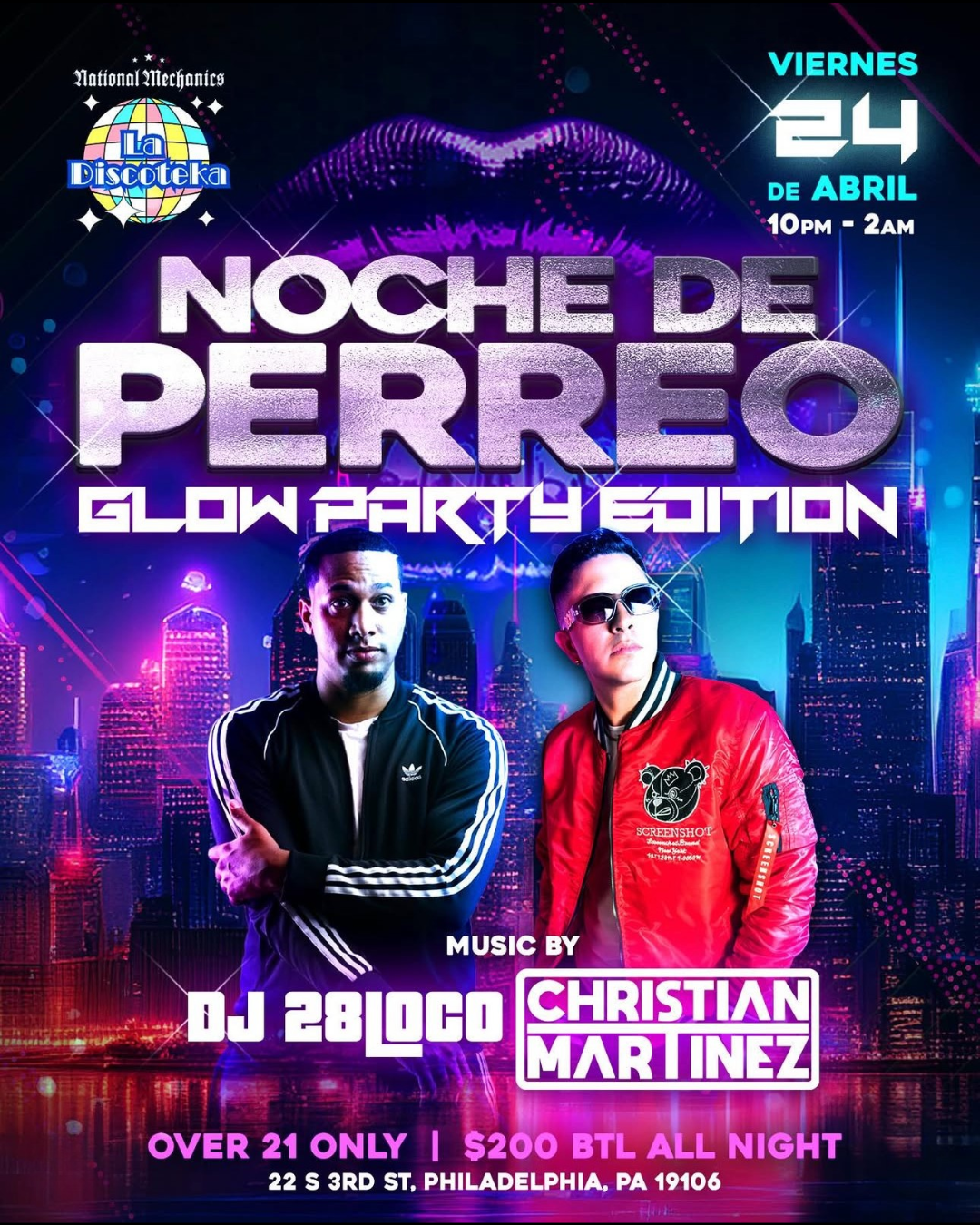 Noche De Perreo | Glow Party Edition Friday, April 24, 2026 10:00 PM 10:00 PM 22:00 22:00 Google Calendar ICS Noche De Perreo | Glow Party Edition 10pm-2am | Late Night Happy Hour 10pm-11pm + $30 Beer BucketsMore Info - La Discoteka IG